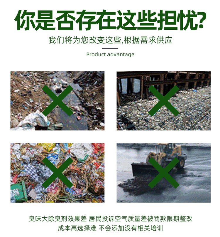 除臭劑主要應用與,垃圾填埋場,垃圾處理廠,污水處理廠,垃圾中轉站,垃圾堆肥站,垃圾焚燒廠等。固廢除臭劑可有效的去處硫化氫,氨氣,二氧化碳,甲liu醇,胺等多種常見的惡du氣體。